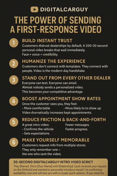 The Digital Car Guy is a seasoned automotive consultant dedicated to empowering dealerships with the latest technologies and streamlined processes. With a focus on enhancing customer experiences and operational efficiency, he bridges the gap between traditional dealership operations and modern digital solutions.